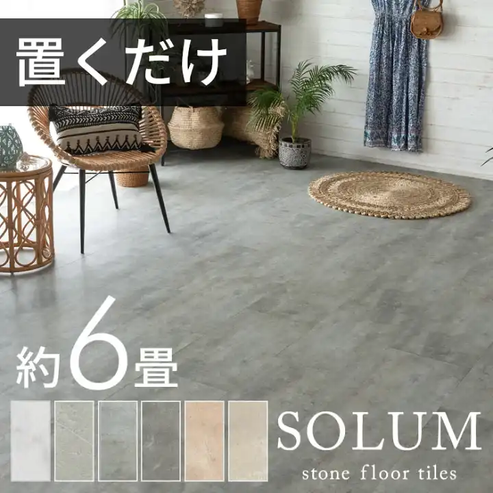 SOLUMは裏面が吸着タイプになっているので、接着剤が不要の置くだけでOKのフロアタイルです。