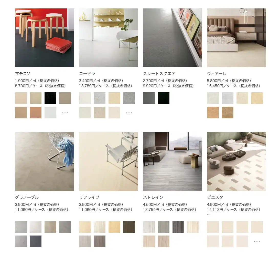 種類も非常に豊富ですが、価格は他のフロアタイルと比べると少し高めです。
